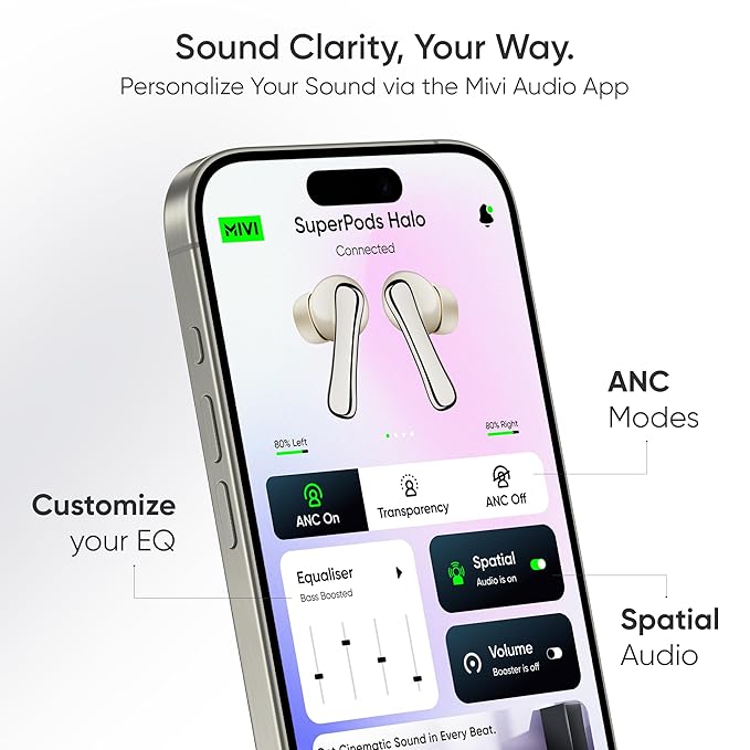 Mivi SuperPods Halo [Flagship Launch], True Wireless Earbuds with 35dB ANC, 3D Soundstage, 60H Playtime, Spatial Audio, Transparency Mode, 13mm Drivers, and IPX4 Water Resistance
