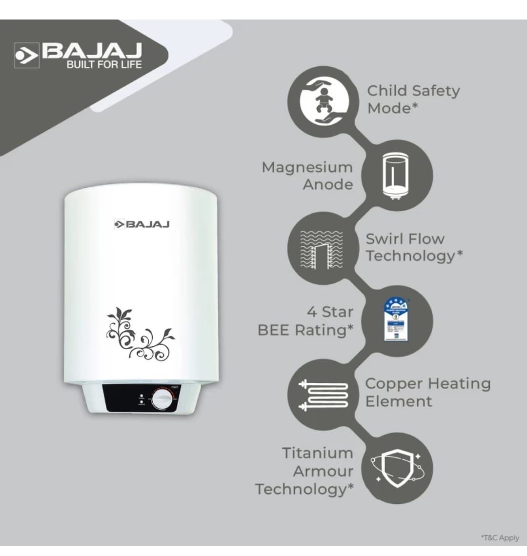 BAJAJ 25 L Storage Water Geyser Suitable for large wall spaces (Popular Plus 25 L, White)