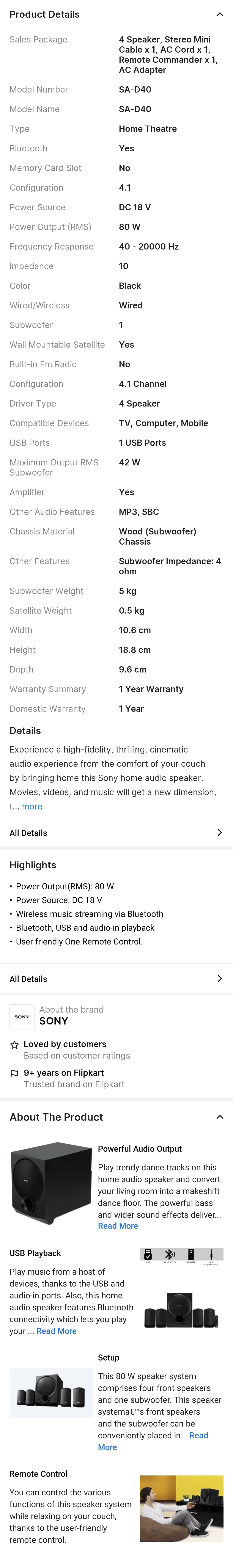 SONY SA-D40 80 W Bluetooth Home Theatre (Black, 4.1 Channel)